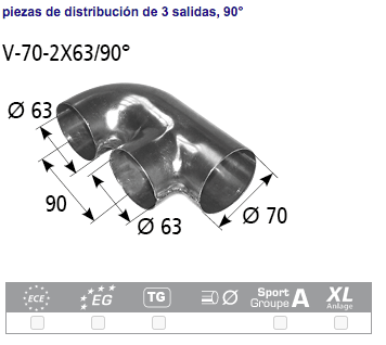 Entrada Ø 63 mm 2x salida Ø 54 mm