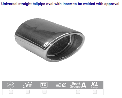 Tubo de salida recto óvalo 120 x 80 mm, longitud de 145 mm con conexión a 63.5 mm