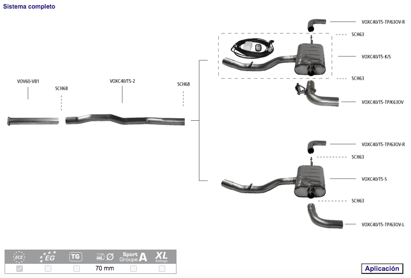 Tubo simple de salida para Volvo VOXC40/T5-TP/63OV-L